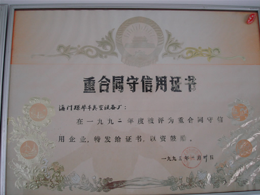 重合同守信譽證書