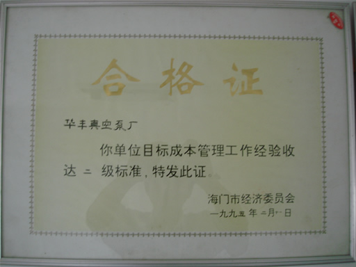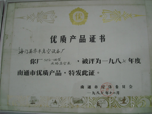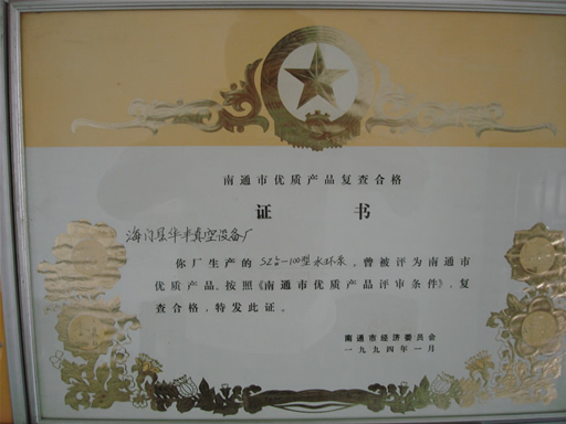 SZ水環泵優質產品證書