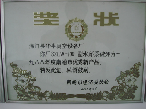 SZLW-100型南通優秀新產品獎