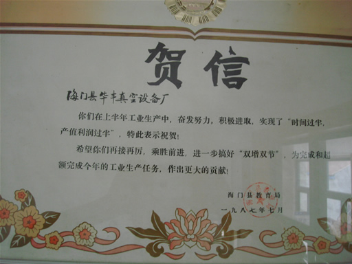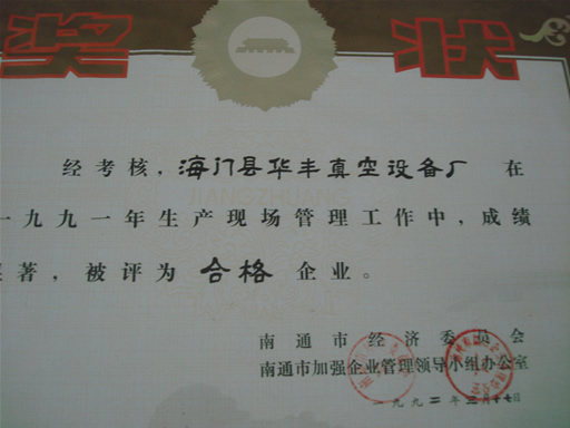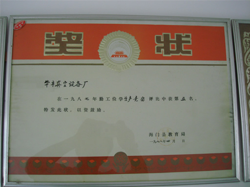 1987年南通優質產品證書