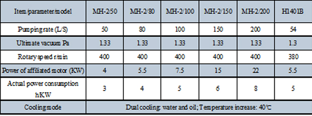 The mechanical motion system of this pump is made by internationally advanced technology. The top rotary technology in the world, together with Rhodes law (oil splash lubrication) and Newton's law of inertia as well as two stages double cooling and lubrication are applied to the pump. The working power is only half of W series (to and fro type) and X series (vane pump) (the pumping rates are the same). This pump is characterized by reliable and stable operation as well as low noise, low working power and long service life. The main components of the pump body are composed of abrasion-resistant, high-silicon cast iron and are completed at once after surface treatment in the processing center. This pump is also characterized by high precision, less abrasion and less maintenance, and is widely used in dyeing, chemical industry, food additive, pigment, paint, medicine and fine chemical industry and other industries. It is the best in domestic vacuum pump industry. Performance and Specification Main Performance Parameters